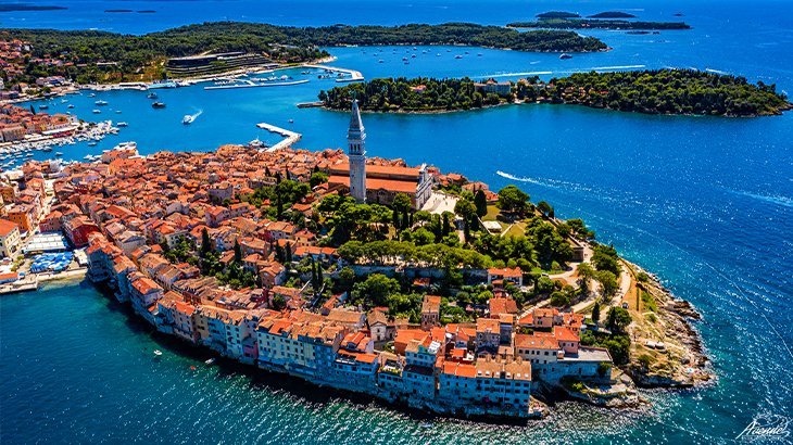 5.เมืองโรวินจ์ (Rovinj) เมืองชายฝั่งอันงดงามตั้งอยู่ในคาบสมุทรอีสเตรีย เป็นเมืองเก่าที่มีเสน่ห์ ถนนที่ปูด้วยหินแคบๆ อาคารสีสันสดใส ในอดีตเคยถูกอิตาลีปกครอง ทำให้เมืองแห่งนี้ได้รับสถาปัตยกรรมและวัฒนธรรมของอิตาลีมาเป็นอย่างมาก จนได้รับขนานนามว่า "เวนิสแห่ง โครเอเชีย"