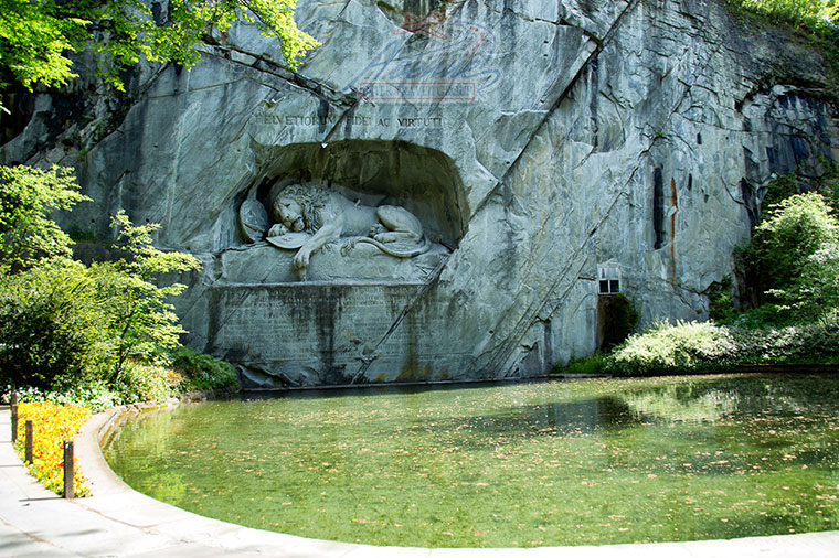 ในเมืองลูเซิร์นมีรูปปั้นสิงโตชื่อดังที่รู้จักกันในชื่อ " อนุสาวรีย์สิงโต " หรือ " สิงโตแห่งลูเซิร์น " (Löwendenkmal) อนุสาวรีย์สิงโตเป็นสถานที่ท่องเที่ยวที่สำคัญและเป็นสัญลักษณ์ของเมือง เป็นประติมากรรมที่น่าทึ่งซึ่งแกะสลักไว้บนหน้าหินและรำลึกถึงทหารองครักษ์ชาวสวิสที่เสียชีวิตระหว่างการปฏิวัติฝรั่งเศส