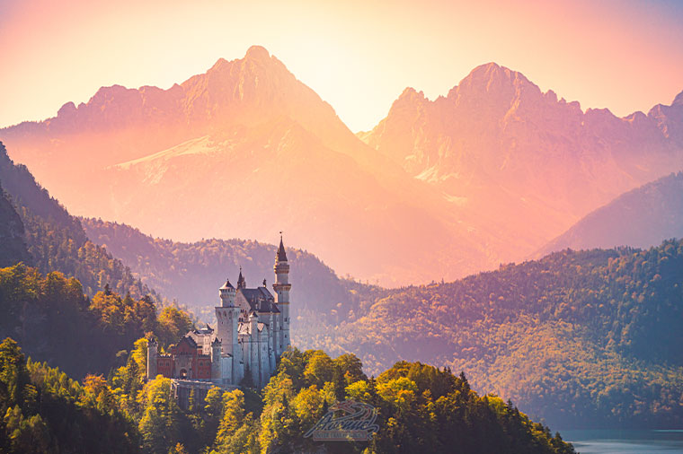 ปราสาทนอยชวานสไตน์ ประเทศเยอรมัน ตั้งอยู่ในเทือกเขาแอลป์แถบแคว้นบาวาเรียสร้างขึ้นระหว่างปี 1845-1886 เป็นปราสาทที่มีชื่อเสียงระดับต้น ๆ และเป็นที่รู้จักกันดี เนื่องจากเป็นต้นแบบปราสาทเจ้าหญิงนิทราของสวนสนุกดิสนีย์แลนด์และปราสาทแห่งนี้ออกแบบโดย Christian Jank ตามจินตนาการของพระเจ้าลุดวิกที่ 2 แห่งบาวาเรีย ในศตวรรษที่ 19