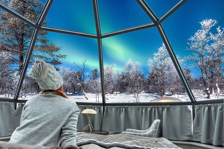 โดยเฉพาะในช่วงฤดูกาลที่สามารถเห็นแสงเหนือ ท่านจะได้สัมผัสบรรยากาศการพักผ่อนที่ดีที่สุดในโลก นั่นก็คือการนอนดูแสงเหนือ ตลอดทั้งคืนผ่านโรงแรมกระจก
