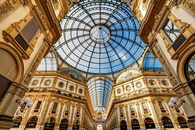 ห้างสรรพสินค้ากลางเมืองมิลาน (Galleria Vittorio emanuele) ที่นี่เป็นห้างสรรพสินค้าเก่าแก่ที่สุดในอิตาลีและเรียกได้ว่าเก่าแก่ที่สุดในโลกเลยก็ว่าได้ ตั้งอยู่ใจกลางเมืองมิลาน โดยห้างนี้มีโรงแรมระดับ 5 ดาวตั้งอยู่ภายในด้วย ความโดดเด่นของที่นี่ยังตั้งอยู่ติดกับมหาวิหารมิลาน